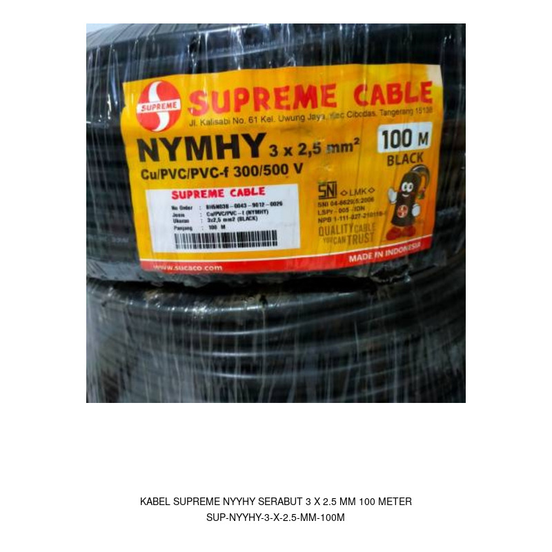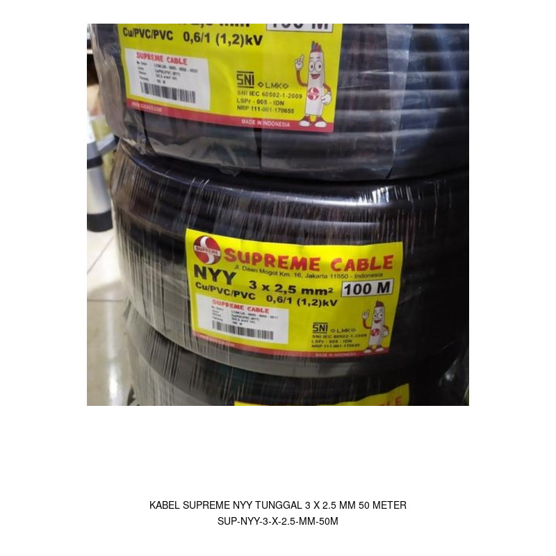 Kabel Supreme NYA tunggal 1 x 300 mm warna kuning hijau