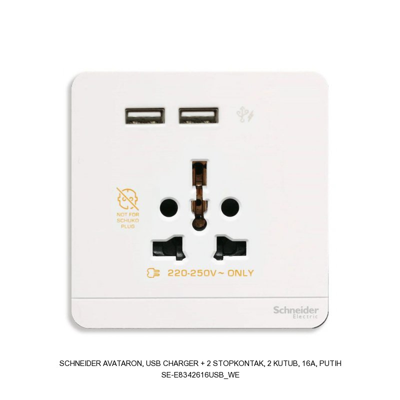 AvatarOn, USB charger + 2 stopkontak, 2 kutub, 16A, putih