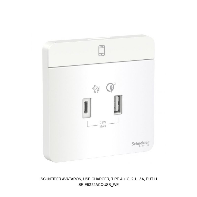 AvatarOn, USB charger, tipe A + C, 2.1...3A, putih
