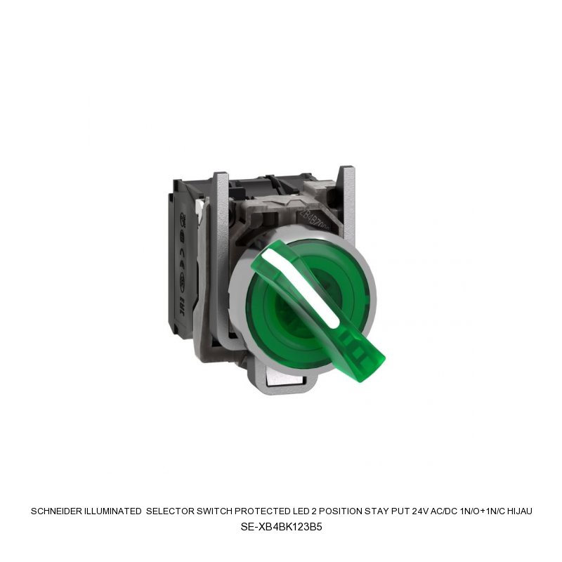ILLUMINATED SELECTOR SWITCH Protected LED 2 position stay put 24V AC/DC 1N/O+1N/C HIJAU