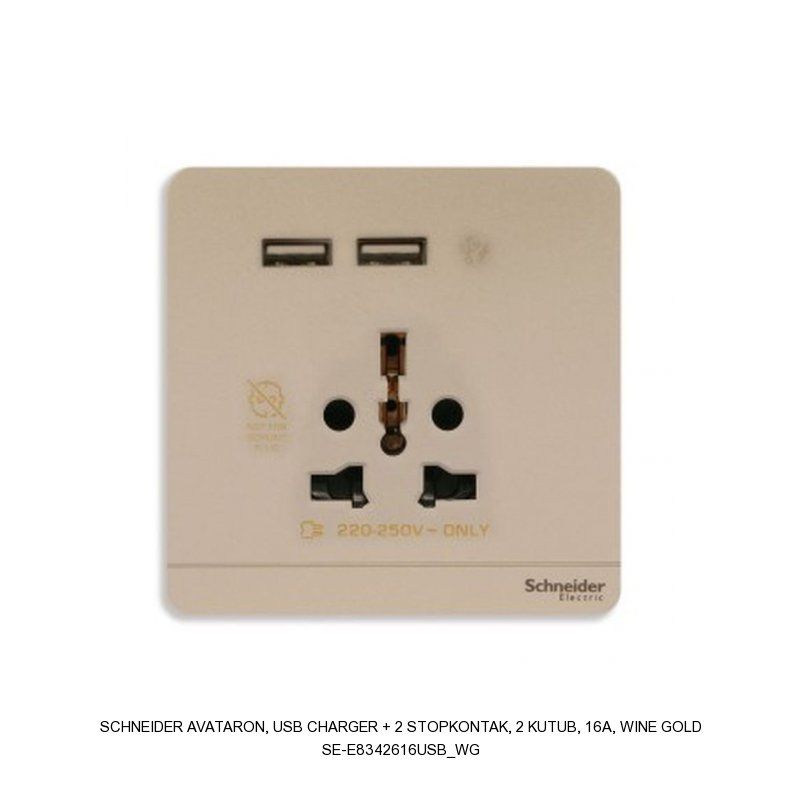 AvatarOn, USB charger + 2 stopkontak, 2 kutub, 16A, wine gold