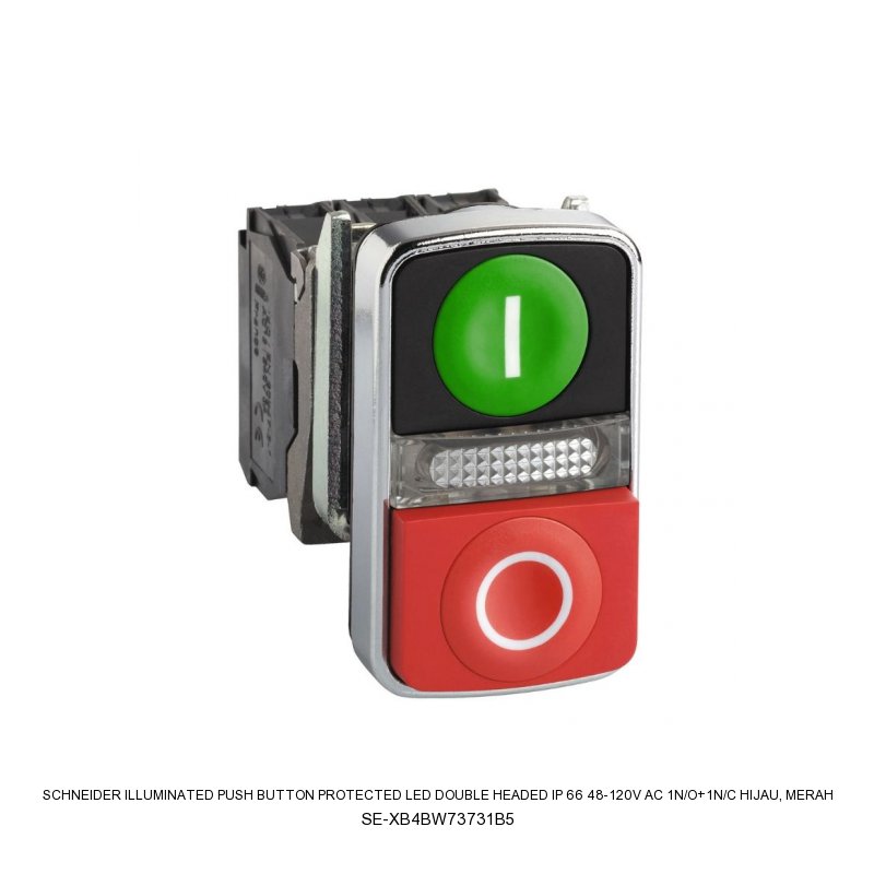 ILLUMINATED PUSH BUTTON Protected LED Double Headed IP 66 48-120V AC 1N/O+1N/C HIJAU, MERAH