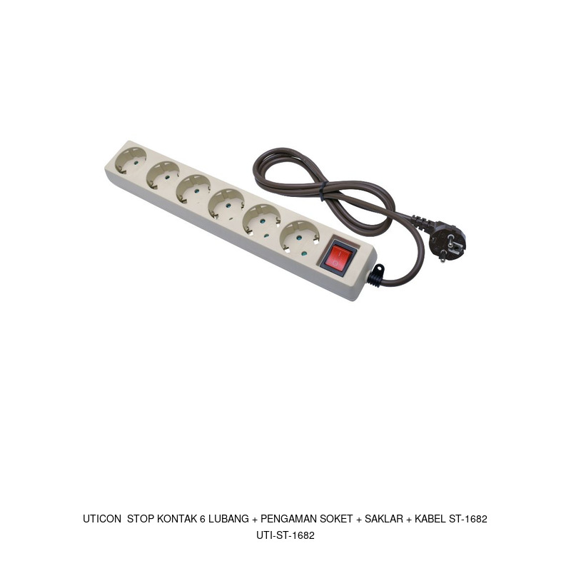 Uticon Stop Kontak 4 Lubang UFO + Pengaman Soket + Kabel 4M ST-148 CR Putih