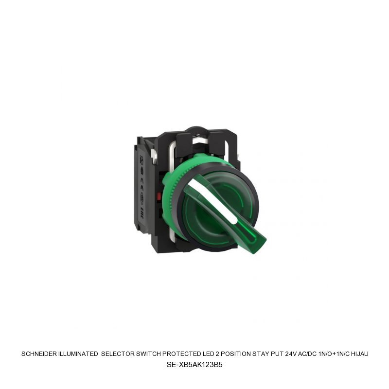 ILLUMINATED SELECTOR SWITCH Protected LED 2 position stay put 24V AC/DC 1N/O+1N/C HIJAU