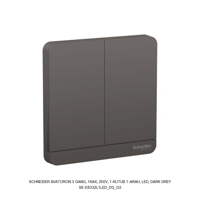 AvatarOn, 2 Gang, 16AX, 250V, 1 arah, LED, Dark Grey