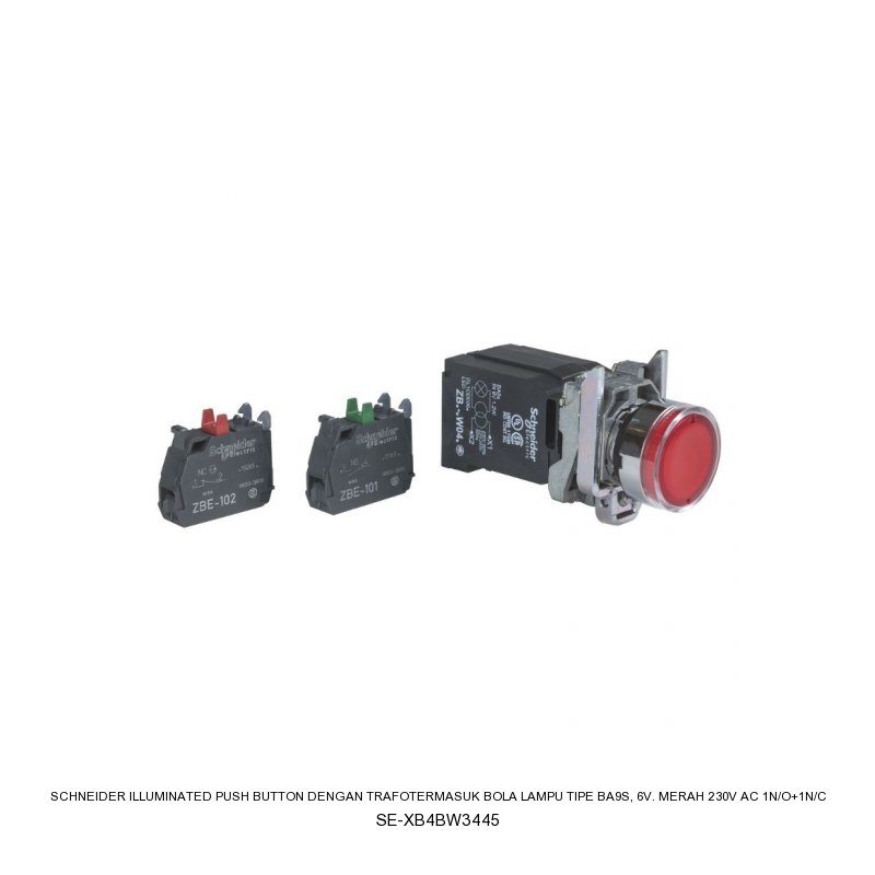 ILLUMINATED PUSH BUTTON Dengan Trafotermasuk bola lampu tipe BA9s, 6V. MERAH 230V AC 1N/O+1N/C