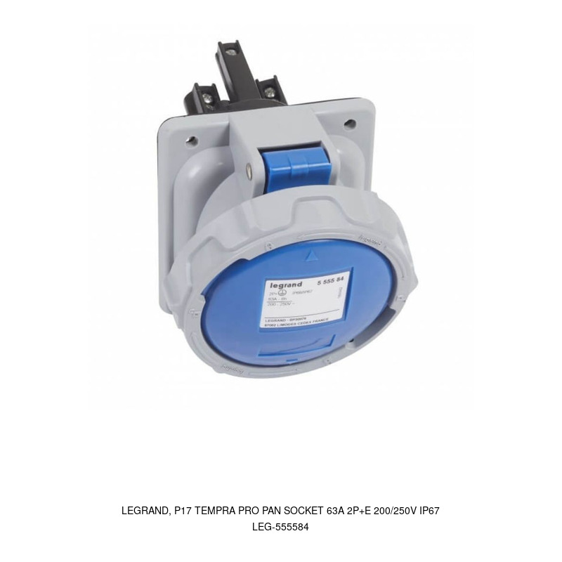 LEGRAND, P17 TEMPRA PRO PANEL SOCKET 63A 2P+E 200/250V IP67