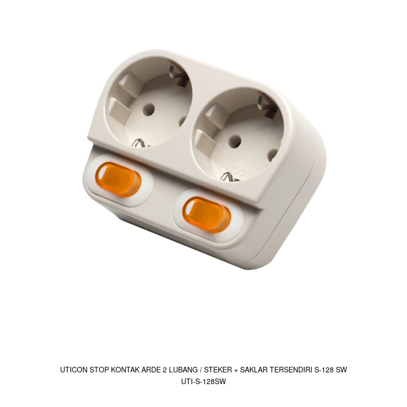 Uticon Stop Kontak Arde 2 Lubang / Steker + Saklar Tersendiri S-128 SW