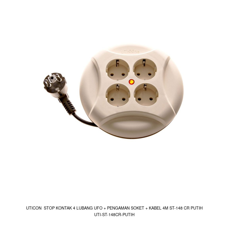 Uticon Stop Kontak 4 Lubang UFO + Pengaman Soket + Kabel 4M ST-148 CR Putih