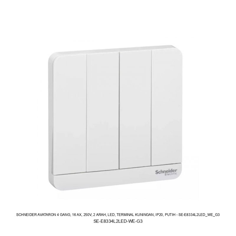 AvatarOn 4 gang, 16 AX, 250V, 2 arah, LED, terminal kuningan, IP20, putih