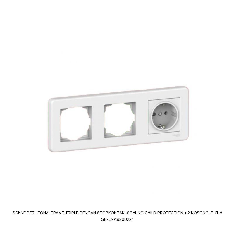 Leona, Frame triple dengan stopkontak schuko child protection + 2 kosong, putih